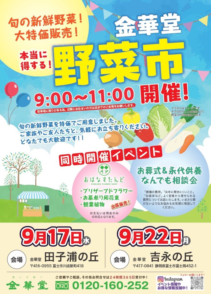 金華堂 野菜市が開催されます。