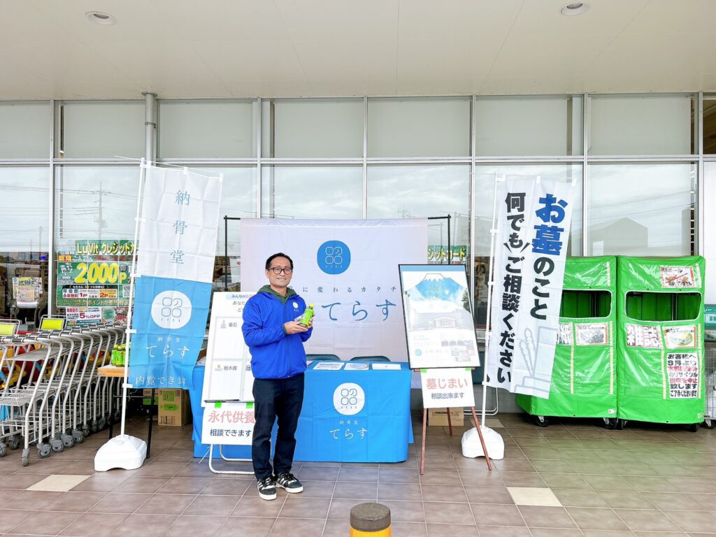 催事をやってみての感想は、今年で4年目になる納骨堂てらすですがまだまだ知らない方が多い印象を受けました。なぜ初の催事をバロー新富士店さんでやったのか、それはてらすから距離が近いので見学に行きやすいことと、ご案内がしやすいこと、認知調査も行いたかったからです。富士市で永代供養をお考えの方、お墓どうしよう…と悩んでいる方に見つけてもらう為にさらに認知を広めるべくこのような催事イベントをこれからも続けていきます。